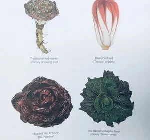 The chicories (Cichorium Intybus) are wonderfully diverse and there are several distinct varieties. Radicchio is the popular Italian name for chicory and Rossa die Treviso, Palla Rossa and the green leafed Sugar Loaf are my favourites. Endives (Cichorium Endivia) are another group in the chicory family and like the broad-leafed Nuance and the curly-leafed Pancalieri. The latter virtually self- blanching.